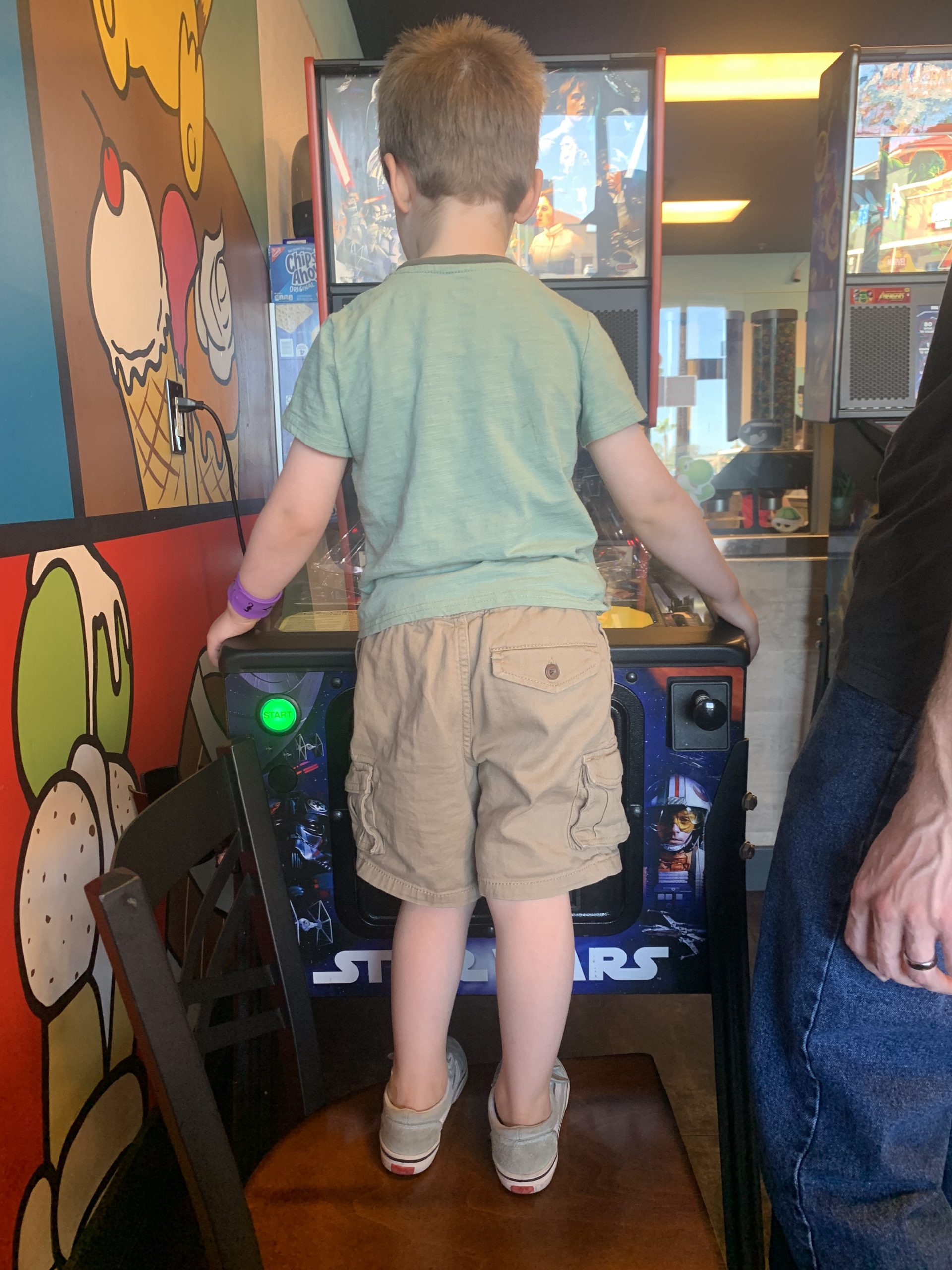 The first week of July we took of to Las Vegas to spend a week with everyone. We had a fun time and got to do and see a lot of people. On the 4th of July we got up and had breakfast with Grandpa and Grandma. Then we went over to Memaw’s and Papa’s and celebrated with everyone. We had Auntie Krystal, Uncle Doug, Cyrus, Icarus, Uncle Cory, Auntie Gen, Grandpa Jack and Memaw and Papa. They put up a big water slide and had water balloons for you guys. You and Icarus had a fun time playing with them together. It was super hot. We spent most of the time inside. We did go out later after dark and do some fireworks. You really enjoy doing the fireworks. The poppers are your favorite. The rest of the week was pretty chill. We just visited with family mostly and ate at all the restaurants that mom misses. Of course we stopped at TK’s and you got to play your pinball machine. You are getting so big. Friday we got to go play with your friends the Brickey’s for a bit which was fun. On the last day we were in town we went to the Shark Reef with Grandpa and Grandma. You were flying through the exhibit and kind of didn’t want to be there very long until daddy offered you his phone to take pictures. You love taking pictures. You took daddy all the way back to the beginning of the exhibits to take pictures. The big shark tank was super cool as well as the jelly fish and octopus. You even touched a stingray. All in all, our trip was a fun and relaxing one thankfully. Not so crammed with plans like our weekend trips are. The rest of July has been pretty chill. We did go to Granny Sues after church the other day and we went swimming with Chico and Ciocia. We all had a lot of fun relaxing in the pool. When we got out we all had some yummy ice cream. Camp is next week, so we might drive up and visit Chico and Ciocia.